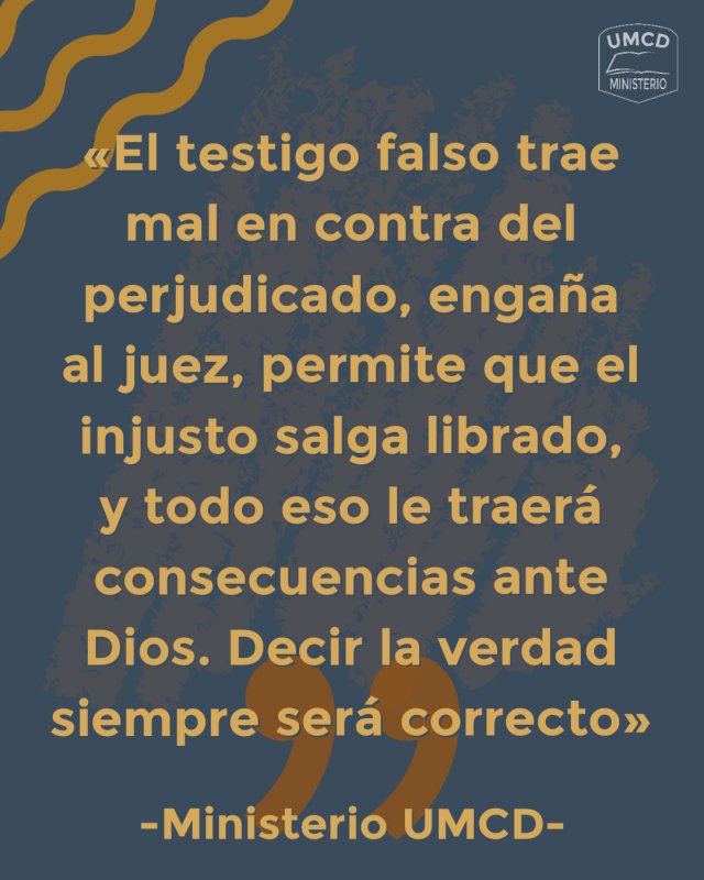 «El testigo falso trae mal en contra del perjudicado, engaña al juez, permite que el injusto salga librado, y todo eso le traerá consecuencias ante Dios. Decir la verdad siempre será correcto»