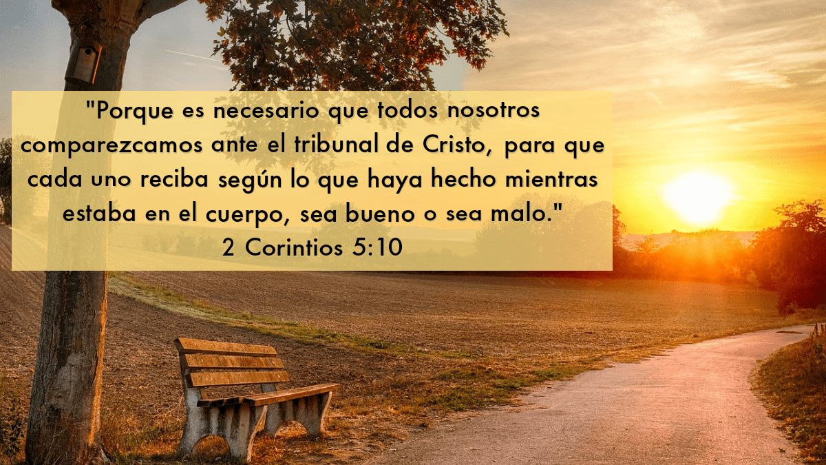 Tener en mente que un día partiremos de este mundo, y que nuestro cuerpo mortal y pecaminoso será cambiado por uno eterno y puro, nos alienta mucho. Pero no olvidemos que hasta que ese día llegue, y podamos por fin contemplar con nuestros propios ojos la gloria de Dios, nosotros seguimos ante la presencia de Dios, y Él nos mira y conoce cada uno de nuestros actos y pensamientos, y nos está juzgando. Por tanto, como Pablo, debemos “o ausentes o presentes, serle agradables”. (2 Co. 5:9)
