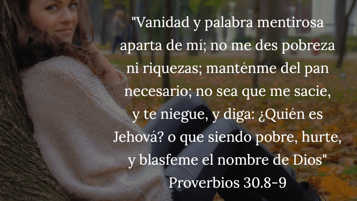 Dios siempre cuida de nosotros, pero también nos ha dado capacidad laboral e intelectual para aprovechar las oportunidades que Él nos brinda y usarlas para nuestra prosperidad. Seamos sabios y actuemos justamente y no nos faltará pan en nuestra mesa.