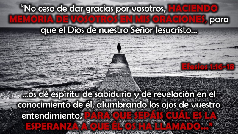 Efesios 1:15-18 “Por esta causa también yo, HABIENDO OÍDO DE VUESTRA FE EN EL SEÑOR JESÚS, y de vuestro amor para con todos los santos, no ceso de dar gracias por vosotros, HACIENDO MEMORIA DE VOSOTROS EN MIS ORACIONES, para que el Dios de nuestro Señor Jesucristo, el Padre de gloria, os dé espíritu deSigue leyendo «Lo ínfimo de este tiempo | VIDA CRISTIANA»